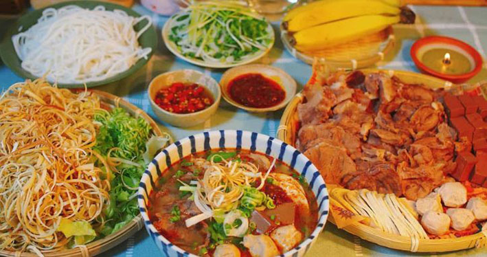 + Bún tôm chua: Xưa là món tiến vua, nay là đặc sản bình dân với giá 20.000 đồng/tô, ăn kèm đầy đủ rau sống.