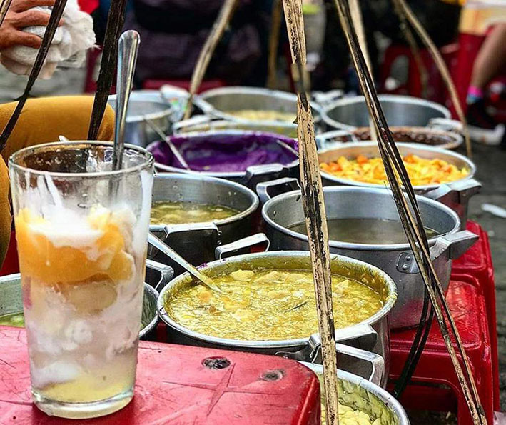 + Chè Huế: Đa dạng các loại chè với vị ngọt thanh, không gắt, ăn kèm nước cốt dừa. Bạn có thể tùy chọn loại chè yêu thích và tính tiền theo lượng ăn.