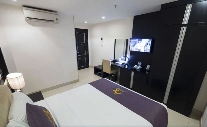👉Không gian phòng mang gam màu nhẹ nhàng. Bài trí tối giản giúp du khách dễ dàng cảm nhận sự thư thái và thoải mái tuyệt đối sau một ngày dài khám phá thành phố.