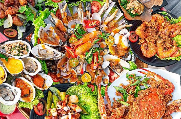 + Các quán ăn nổi tiếng: Mộc Seafood, Bé Mặn, Bà Mua, Đồng Đen…