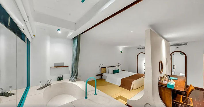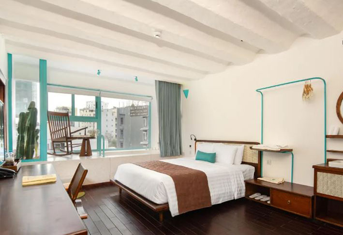 👉Mỗi không gian trong khách sạn đều được bố trí khéo léo nhằm tận dụng tối đa ánh sáng và gió biển. Tạo cảm giác gần gũi, thư giãn nhưng vẫn sang trọng. Những đường cong mềm mại, chi tiết decor tinh tế cùng vật liệu thân thiện môi trường đã làm nên một Le Bouton đậm chất “nghệ thuật sống xanh” giữa lòng thành phố biển.