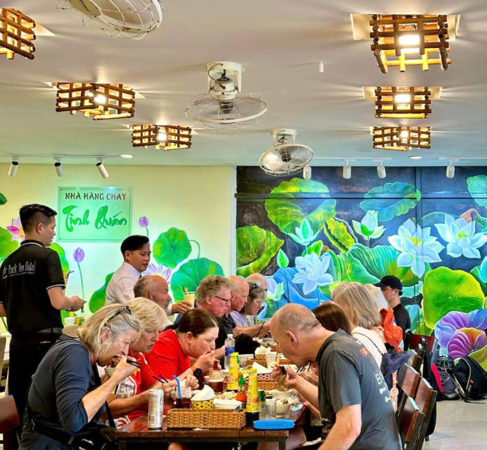 + Nhà hàng chay Tịnh Quán: Huế là trung tâm Phật giáo lớn của Việt Nam. Vì vậy ẩm thực chay tại đây mang hương vị tinh tế và rất đặc trưng. Tịnh Quán là điểm đến được nhiều du khách đánh giá cao khi muốn thưởng thức món chay thuần tuý Huế.