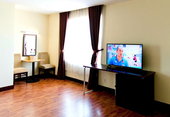 ♣ Tất cả các phòng đều được trang bị: TV màn hình phẳng, Wifi tốc độ cao, điều hòa, tủ quần áo, tiện nghi phòng tắm đầy đủ. Cam kết mang đến không gian nghỉ dưỡng thoải mái – dễ chịu – chuẩn 4 sao.