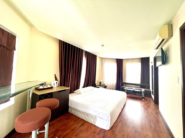 ♣ Khách sạn sở hữu 120 phòng nghỉ rộng rãi. Thoáng đãng với 4 hạng phòng phù hợp cho mọi nhu cầu: