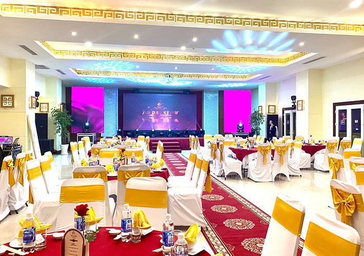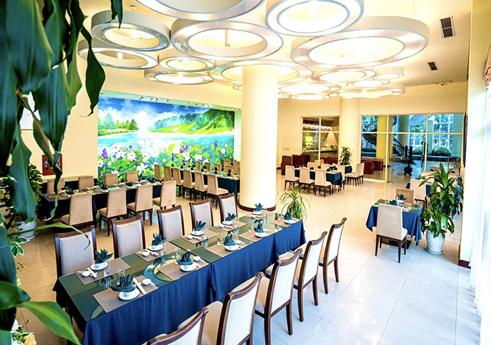 + Nhà hàng Royal: Tầng 2 – khu A, sức chứa: 40 khách. Đây là không gian độc đáo chuyên phục vụ các bữa tiệc cung đình Huế. Du khách có thể thưởng thức: