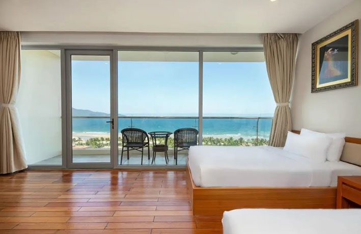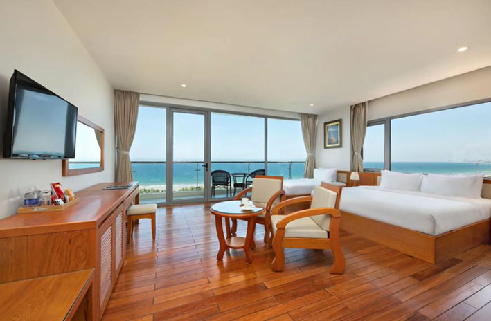 + Suite Gia Đình Ban Công View Toàn Cảnh Biển: (45m²) – Trải nghiệm nghỉ dưỡng đẳng cấp với không gian rộng rãi và ban công riêng, phóng tầm mắt ngắm toàn cảnh biển Đà Nẵng tuyệt đẹp.