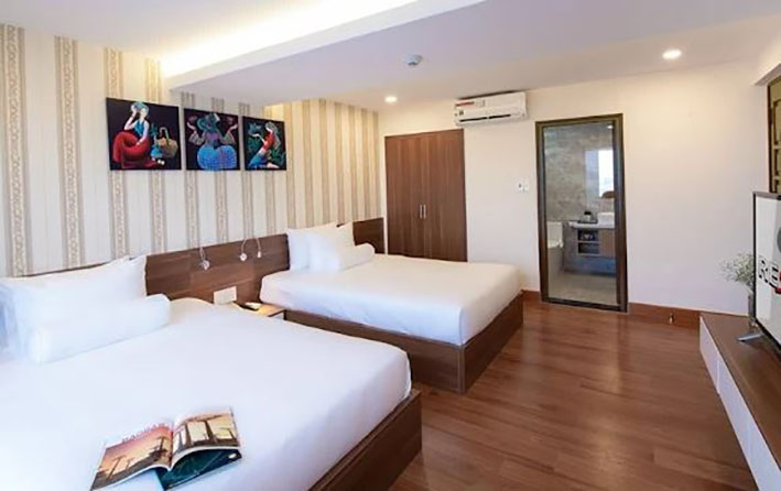 + Deluxe Double Room: View thành phố hoặc biển, không gian sáng, thoáng mát – phù hợp cho cặp đôi hoặc khách du lịch.